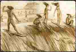 Historia del SURF txt: tresquillas + fuentes citadas mas abajo Origenes. Parece ser imposible poder fijar la fecha exacta de la primera vez que un hombre se deslizó parado sobre una ola, no se tiene conicimientos de la existencia de tales registros... Existen sin embargo 2 teorias principales sobre los comienzos del surf: Las culturas de la Micronesia y demas Islas del Pacifico Sur (Maoríes, Fiji, Tonga, Thaiti...) tuvieron desde su origen una vida y cultura intimamente ligada al mar. A traves de leyendas locales transmitidas oralmente y relatos de expediciones Occidentales en el siglo XVII, se tienen algunos testimonios de la existencia de la actividad de Deslizarse sobre Olas. Lo hacian en canoas y en sus barcas pesqueras. Por otro lado en el Norte de Perú, las culturas locales dejaron trazas que muestran a hombres remontando olas. Los Huacos son ceramicos Pre-Incaicos y en uno de ellos se muestra aparentemente a un hombre sobre un madero o algo similar en actitud de deslizarse sobre una ola. Esto indicaria que todo comenzó en America del Sur... Pero fueron los Polinesios en sus constantes travesias entre islas los que, algunos siglos mas tarde, llevarian la costumbre de deslizar olas hasta lugares como Hawaii. La Era del Surf Clásico en Hawaii. Fue la era anterior al descubrimiento de las Islas Hawaii por el famoso navegante y explorador Capitan James Cook. Al acercarse a las costas de la que es hoy la isla de Hawaii (Big Island), el capitan fue recibido por los habitantes locales que se acercaron hasta el barco braceando en objetos flotadores.