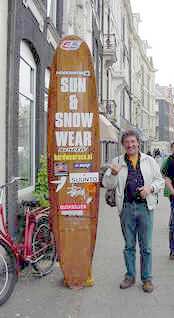 Donde sea que viaje una persona que practica el surf (por mas que lo haga sin su preciada tabla), ésta estará atenta a las olas que pueda haber en el lugar, a las playas y tipo de rompientes, ubicacion de los Surf-shops, etc... En segundo plano parecen quedar los Museos, Teatros y Palacios. Y siempre que se pueda organizar un viaje con tiempo se intentará tomar como destino aquel que asegure buenas olas y entorno natural....'' Pero mi amor, si no hay olas, para que vamos a ir a Paris ??? '' En esta seccion les damos informacion sobre algunos de los destinos que conocimos y visitamos en los ultimos años. Otros quedan pendientes, estando en proceso de escritura viajes realizados a Hawaii y California del Sur en el 2001. Tambien les proponemos una serie de Links a páginas web interesantes sobre varios destinos y paises con potencial para las buenas olas. Estan invitados a mandarnos cualquier informacion sobre sus viajes o países via E-Mail (click aqui!) para ser publicados en esta seccion junto a su nombre. Importante: Por favor enviar unicamente textos escritos por ustedes. No nos reenvien material obtenido de otros sitios web que hayan sido escritos por terceros, ya que estarian violando su derecho de autor. Foto: Gustavo en el unico Surf-Shop de Amsterdam, Holanda. Mayo 2003.