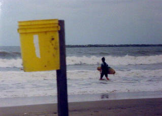 Foto: (La Aguada-Uruguay): cada cual en su lugar...basura al cesto y surfista al agua.