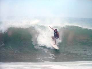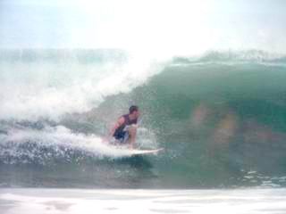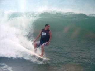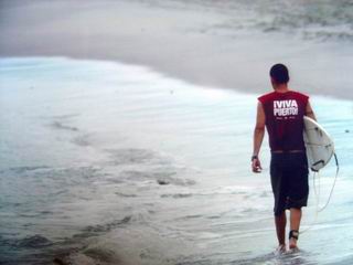 AM, un rato antes que empiece mi bateria.. 19/11/2006, Se acabó el Contest ... Se acabo Puerto para mi...Oscar Moncada fue el que me toco para el "hombre a hombre"... La verdad qe me gano muy justamente....me destrozo.... es un local medio humano medio leon adentro del agua... Hubiera dicho qe el llegaba a las finales con Angelo Lozano, si no fuera porque se lo cargo un hawaiiano en las semis.... No corri bien... elegi mal las olas... siento qe lo pude haber hecho mejor... Aun asi hubiera corrido el mejor dia de mi vida, hubiera sido dificilisimo ganarle a Oscar; su surf es muy fuerte, y tiene un repertorio de trucos ridiculo!!! Baje un par qe me machacaron hasta el apellido...y otra vez la corriente me hizo perder mucho tiempo y mucha fuerza. Con las baterias del viernes y sabado, quede de cama para una semana... Es muy diferente los minutos de un campeonato, que los minutos de surf en libre... no tienen nada que ver...no se porque, pero pesan muchisimo mas. Sono la bocina y yo perdi... haber quedado