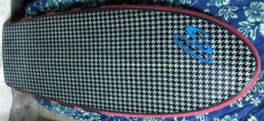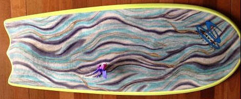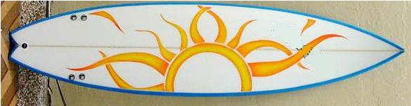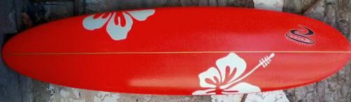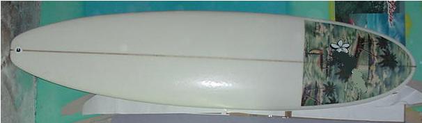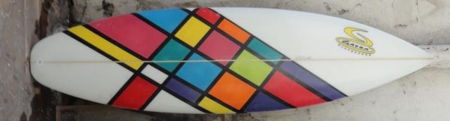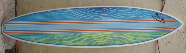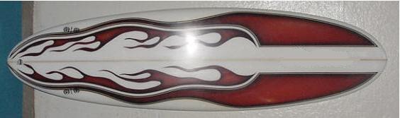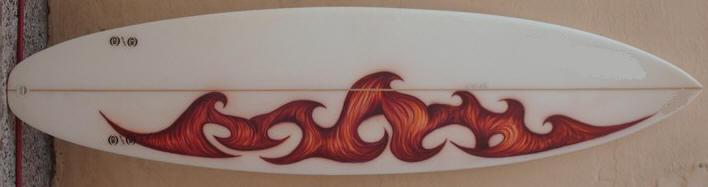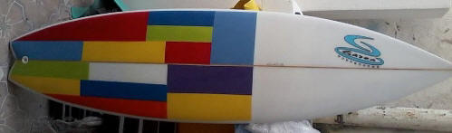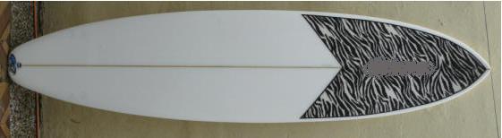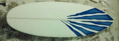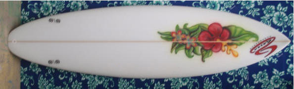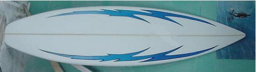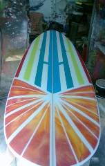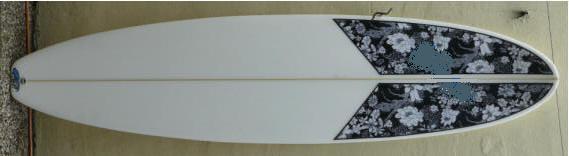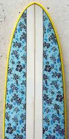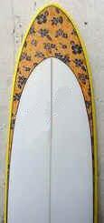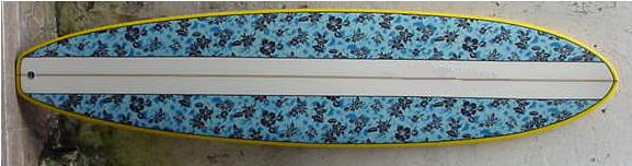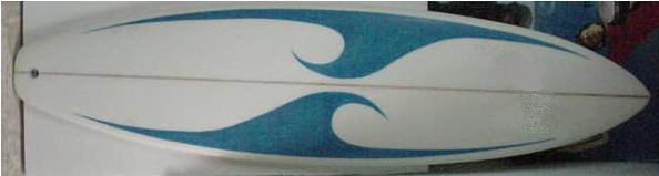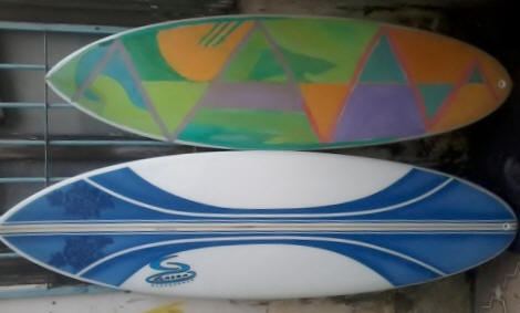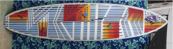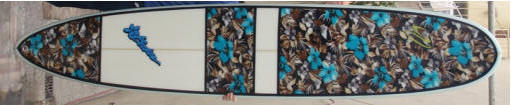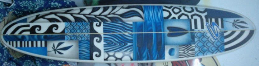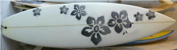 1) ''entelado'' de tablas: A parte de la pintura con aerógrafo o pincel, existe otra opción de decoración de tablas de surf. Esta consiste en usar retazos de tela estampada con diferentes motivos. Por lo general esta ultima opción se aplica en longboards ya que se consiguen diseños ''clásicos'', usando telas con estampados de flores hawaianas (hibiscuses, plumeria...), o con motivos alegóricos a la cultura del surf. La tela queda por supuesto por debajo de la resina.