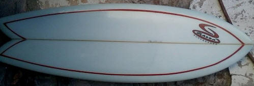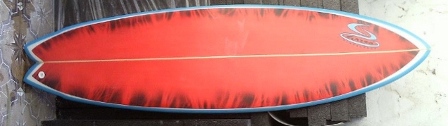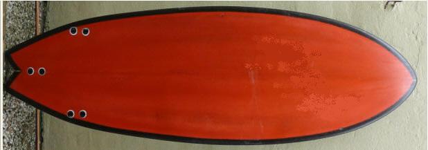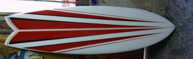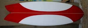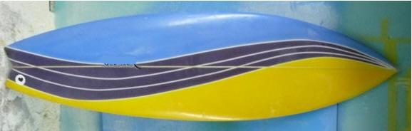 Los fish son un tipo de tabla que derivan de nuestros primos hermanos los knee-boarders del Santa Mónica Peer, allá en California por los años 70. Originalmente son tablas mas cortas que lo habitual (menor a 6 pies de longitud), con rails prácticamente paralelos en la zona de la cola, cola en forma de cola de pescado o swallow bien marcada, y quillas paralelas o twin-fins. Este tipo de tabla es divertido en días de mar chico, olas prolijas y de rompimiento progresivo. Aqui abajo un verdadero fish.