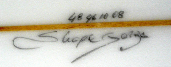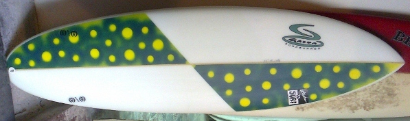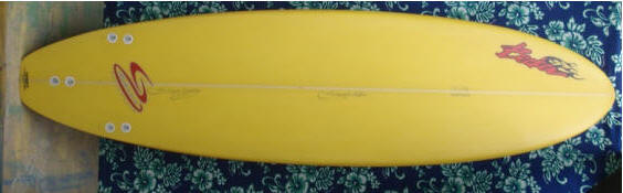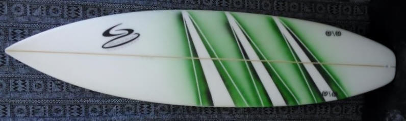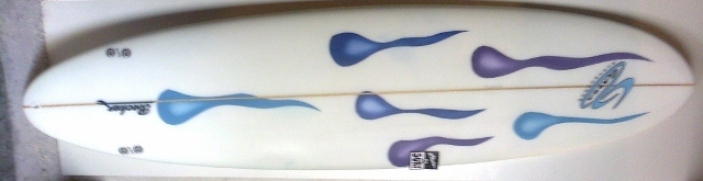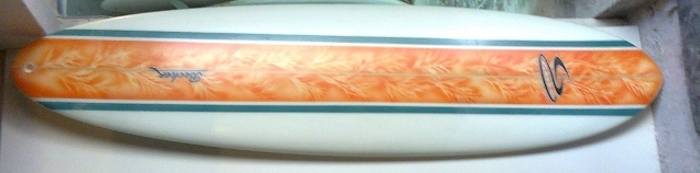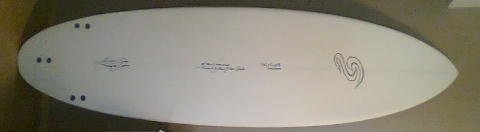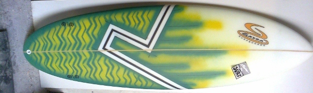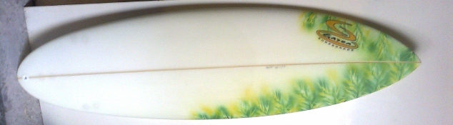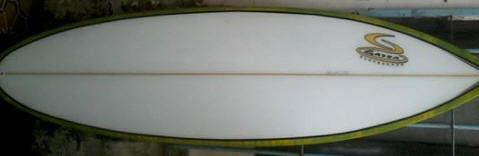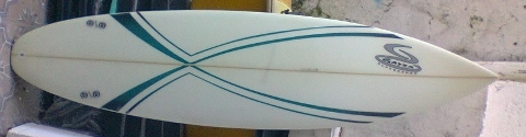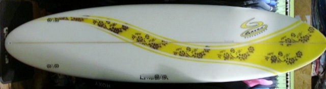 Medidas de una tabla producción 2008, y firma de un shape terminado con la codiciada firma de Garza. Efectivamente, poco importa la marca en sí de una tabla de surf o el logo con el que pueda venir, sino que lo que realmente importa es la firma que certifica que tu tabla fue hecha y producida por un shaper reconocido y de experiencia.