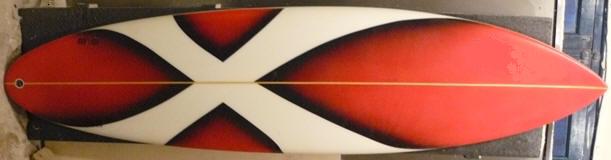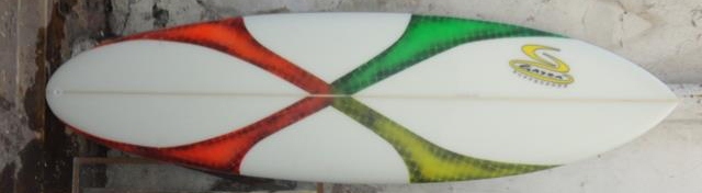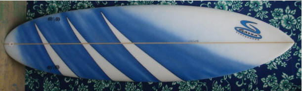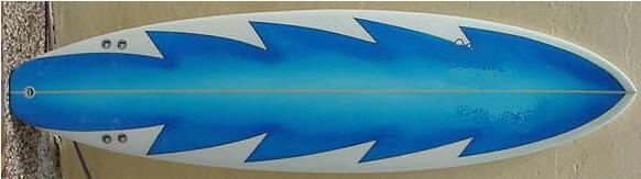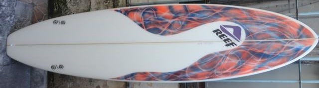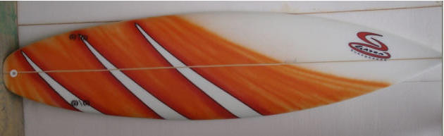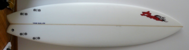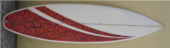 Tabla del tipo shortboard con mayor volumen y poder de remada. Presentado en la XPOX - un híbrido todo terreno ideal para las olas del atlántico sur. Abajo: Piraña de 4 quillas con cola fish.