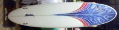 Tabla corta de buen lomo, nariz voluminosa, ideal para "volar" en días de mar ordenado y olas de tamaño medio a chico. Buena opción de tabla veraniega para los días sin mucho swell. Tamaño ideal cercano a los 7 pies, dependiendo de contextura fisica y altura.
