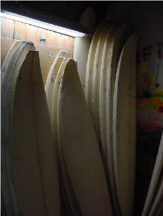 Foams Clark, una especie en extinción, esperando a ser shapeados / Foam seleccionado en el Shaping Room / Comenzando a pelar el foam.