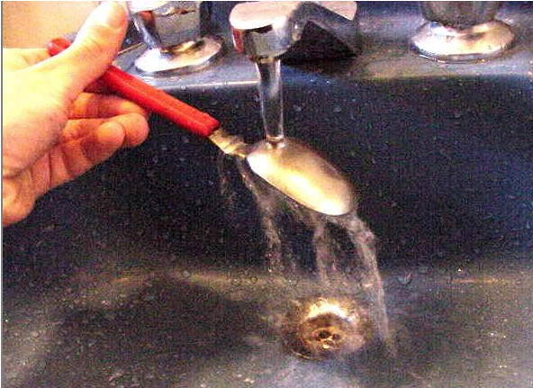 En las fotos de arriba tomadas en los ''Laboratorios de Ingeniería Hidráulica Tres Quillas'', se puede ver la diferencia notable entre el comportamiento del flujo de agua incidente (chorro de la canilla contra la cuchara, o flujo de agua de mar contra el fondo de tu tabla) frente a una superficie cóncava (izquierda) y una superficie convexa (derecha). Las cucharas ofrecen estas dos formas de superficie, y se puede ver claramente como el flujo de agua es orientado y acelerado por la superficie cóncava (foto izquierda), y por el contrario como es frenado y dispersado por la superficie convexa (foto derecha). Por esta razón es que se le da una forma ligeramente cóncava a la parte inferior de las tablas: se suele hacer uno o dos canales cóncavos que van desde la zona de las quillas hacia la cola de la tabla, para facilitar la salida del flujo de agua, y facilitar el andar de la tabla.