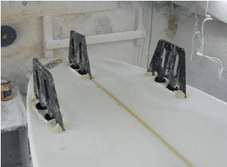 Agujereando para luego colocar tapones de quillas desmontables / agujeros para tapones / posicionando los 3 juegos de tapones con herramientas FCS