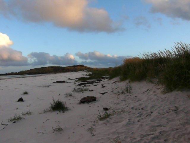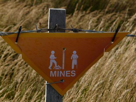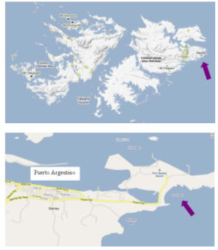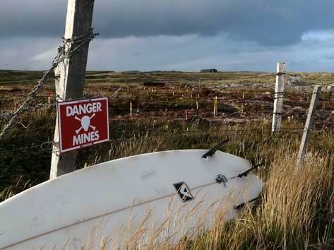 El largo, frío y solitario derrotero hacia el cumplimiento de un sueño: surfear en las Malvinas, en la Surf Bay, al este de Puerto Argentino.. Apenas llegamos pregunté por la "Surf Bay", que era una de las playas con potencial de surfing y buenas olas inclusive a la que Uds. habían hecho referencia. Unos niños de un yate francés me dijeron que a una media hora a pie podría llegar a esa playa. Que terminaron siendo más de dos horas y media de dura caminata helada, y al fin llegué a la playa. Me habían advertido que tuviera mucho cuidado al aproximarme, ya que la zona está aún minada como triste y peligroso legado de la desgraciada y desafortunada guerra, aunque por suerte estaba bien señalizado.