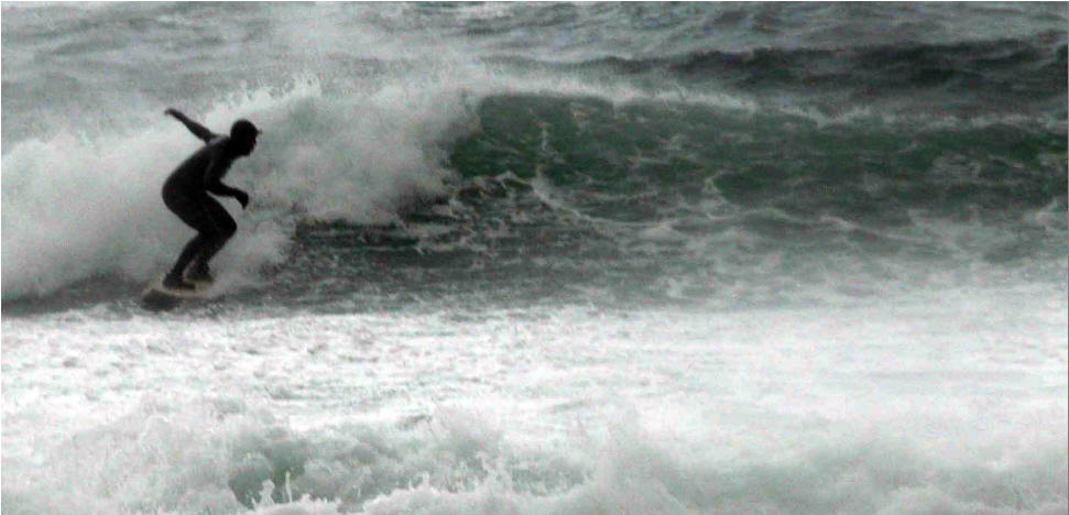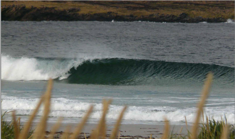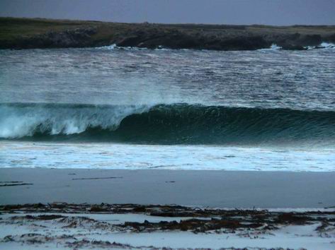 Derechas e izquierdas rompiendo en la Surf Bay de las Islas Malvinas, en un 99.9% de los casos, sin más testigos que las gaviotas y albatros. Las 3 quillas, sinécdoque del surf y del surfista, hasta en lo más remoto del planeta. Los siguientes días fueron de temporal bravo. Todos los días con agua nieve, 40 nudos de vientos del norte del sur... Muy malo el clima. El penúltimo día antes de nuestro zarpe rumbo a la Isla de los Estados, volví a Surf Bay, pero la playita solitaria aunque amistosa del primer día, ya no lo era para nada... Fui con dos compañeros del yate con la intención de filmar y fotografiar mi segunda sesión de surf malvinense… No podían creer que intentara ingresar al mar con esas condiciones: 30 nudos de viento off shore, la ola estaba de 2 a 3 metros con un tubazo amenazante y mucha, mucha corriente... Me la jugué y logré penetrar tras mucho esfuerzo. Esperé el momento… y pude surfear solomente una ola. La corriente era tal que era muy peligroso estar en el lugar, ya que al estar expuesto al Atlántico Sur las corrientes que provienen del Cabo de Hornos son tan fuertes que me podrían haber sacado de la isla, sin posibilidad de retorno alguno. Luego de esa ola el mar no me dejó ingresar nuevamente... Y comenzó a nevar. Mis compañeros se congelaban afuera, así que decidí cambiarme y emprender la vuelta a Puerto Stanley. La temperatura era aproximadamente de unos 2ºC bajo cero, pero mi alma estaba llena...