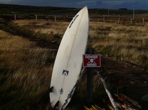 Advertencias en gringo: el peligroso legado de la guerra. La primer imagen que vi fue un tubazo de izquierda! Y a continuación otro de derecha… increíble! La temperatura no pasaba de los 3ºC, con mucho viento y agua nieve cayendo furiosamente desde el cielo. Pero ahí estaba yo, con mi tablita bajo el brazo y un sueño al frente. No había nadie en toda la playa, ni rastros de vida humana. Sólo yo, mi cámara y mi tabla.