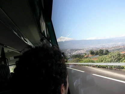 Foto: Camino a la playa en el colectivo con el volcan del Teide nevado de fondo, no saben que lindo es estar en el mar con el sol que te parte la espalda, mirar a lo lejos y ver una montaña nevada, una sensacion copada!! Fotos abajo: lindo color del agua, buenas olas y una vista por cierto privilegiada. Dos surfistas disfrutan en soledad del pico... Un saludo a Eric y a Richard, y buenas olas!