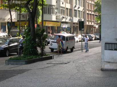 txt: Eugenio Bignes - fotos: Eugenio Bignes En esta oportunidad les envio fotos de una de la mas conocidas playas del planeta, la mitica y famosa Copacabana en un dia de semana, durante el "PAN Rio 2007", imagenes surreales... Imaginen por el centro de cualquier ciudad que les venga a la cabeza, Rosario, Mendoza , Bahia, Bs Aires o cualquier ciudad latinoamericana que este lejos del mar, llena de transito, omnibus, taxis, coches, etc... Gente corriendo con sus portafolios, notebooks, (estos ultimos corriendo para que no se la roben!) vestidos con uniformes de trabajo.