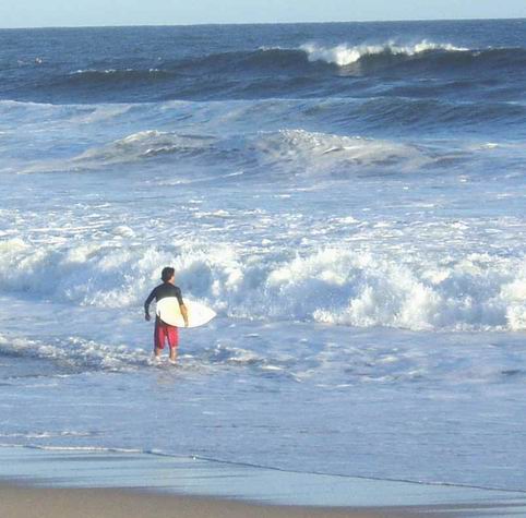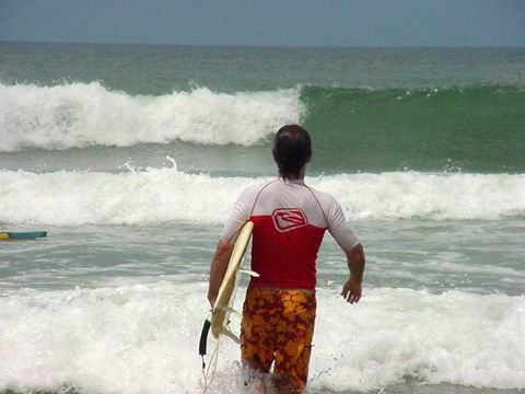 La expectativa de entrar al agua en un dia de lindas olas es casi tan buena como correrlas... Maximo de Tres quillas, por Angie - Enero 2005.