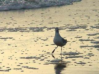 Fotos arriba: (izq) una gaviota haciendo su caminata diaria "Caminar es el mejor ejercicio", (der.) Bonzo, el perro-guardavidas vigilando a los bañistas en un dia de mar calmo mientras medita: "Cuando llegarán las olas? El Peteco dijo que el satélite de Internet marcaba un swell entrando esta noche, tal vez mañana... No veo la hora de estrenar la 6´2" que me hice shapear en Diciembre..."