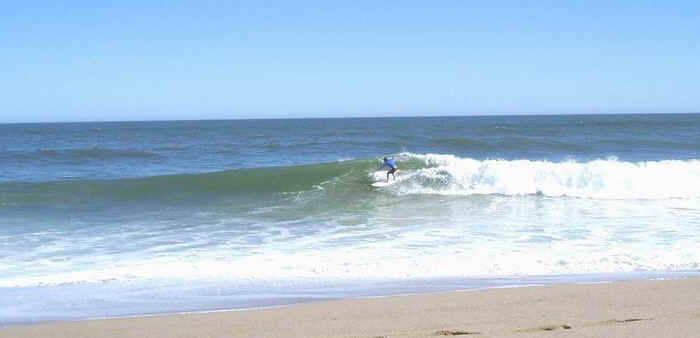 El domingo de mañana, con el viento calmo y el mar acomodado, todos los picos de la costa atlántica presentaban buenas condiciones. En Piriápolis la mejor ola quebró en Punta Negra, donde series de un metrito quebraban sobre el banco de arena.
